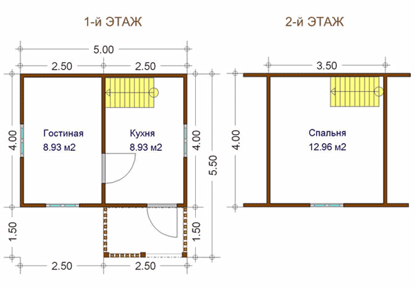 Лаги первого этажа и балки перекрытий – брус 50х150 мм через 800 мм. |