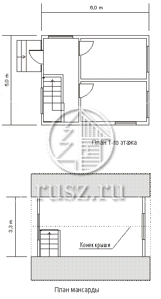 Высота 1-го этажа – 2,3 м. Высота мансардного этажа – 2,2 м. |