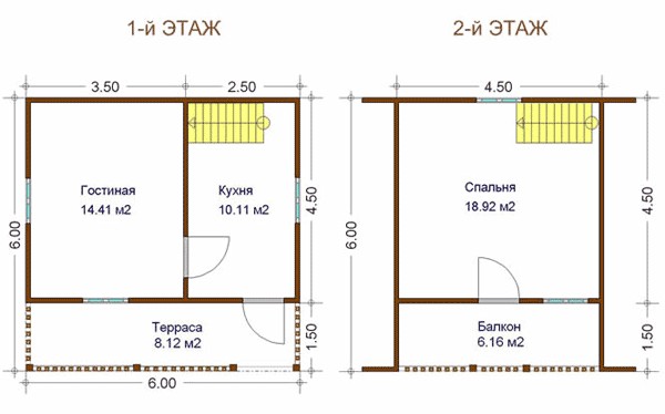 Высота 1-го этажа – 2,5 м. Высота мансардного этажа – 2,2 м. |