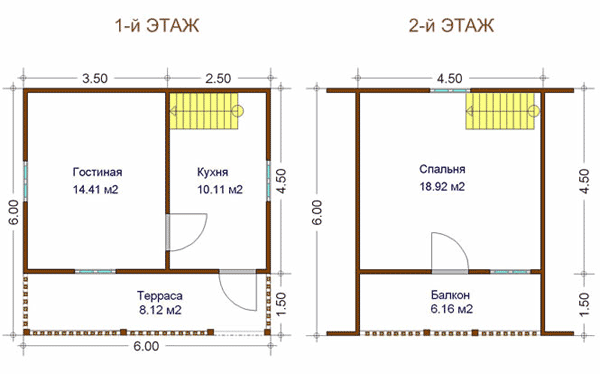 Высота 1-го этажа – 2,5 м. Высота мансардного этажа – 2,2 м. |