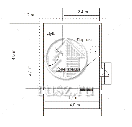 Конструкция: Баня состоит из комнаты, душевой и парной, общ. пл. 18,4 кв.м. Собрана из бруса хвойных пород 100x150 мм с перестилкой растительным мхом или паклей. Наружная часть стены оструганный брус. Внутренние стены оструганный брус (парная обшита осиновой вагонкой). Высота потолков в парной 2,3 м.. Толщина стен 92 мм. Потолок утеплен минватой. Крыша двухскатная без чердачного помещения. Высота конька крыши от потолка 30 см. Выпуск крыши - 10-15 см. Кровля - лист стальной оцинкованный. Пол - двойной (черновой - необрезная доска, чистовой - половая доска 32 мм). Окна двухстворчатое и одностворчатое двухрамные на петлях. В комплект поставки входят фундаментные блоки 20x20x40 в количестве 24 шт. и необходимая монтажная арматура.
