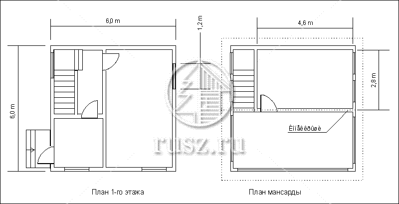 Высота 1-го этажа – 2,3 м. Высота мансардного этажа – 2,2 м. |